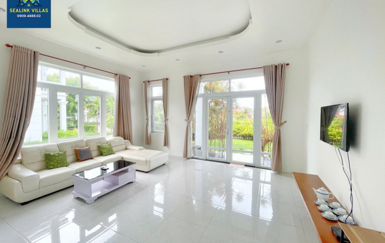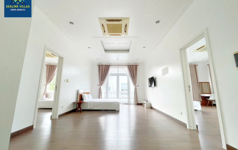 Villa PE23 gồm 3 phòng ngủ, 4 toilet, 2 phòng khách, rộng 400m2. Villa Sealink nổi tiếng nhất tại mũi Né suốt hơn 15 năm qua. Mỗi căn villa ở đây sẽ set-up tổng cộng 3 giường và kèm 1 nệm phụ để dưới sàn.
