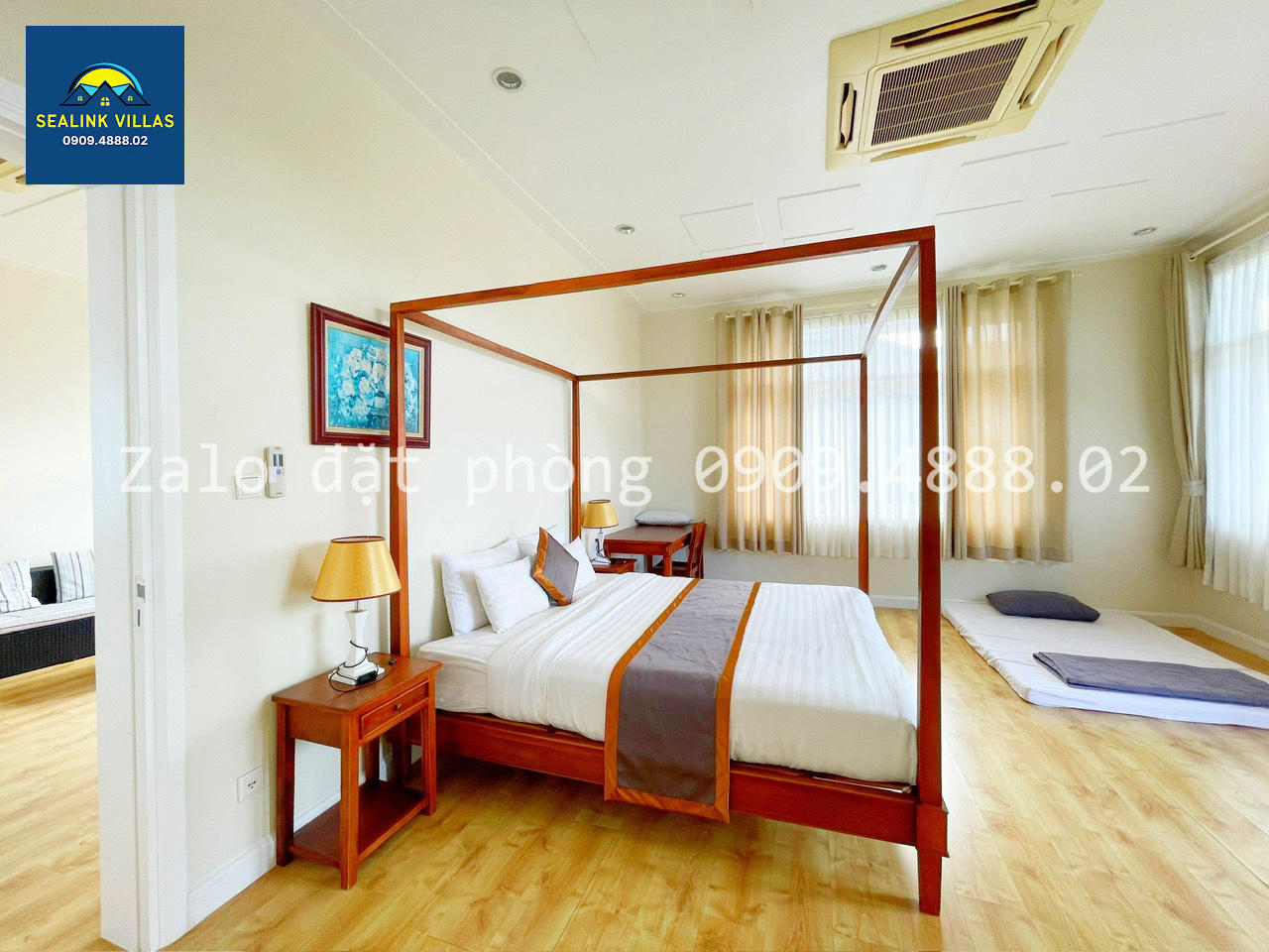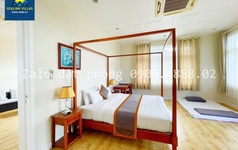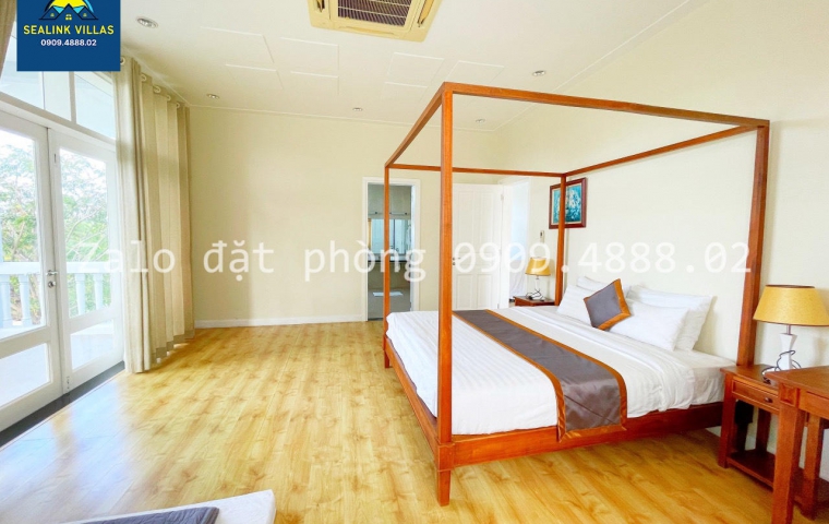 • 3 Phòng Ngủ: Mỗi phòng ngủ đều được trang bị giường đôi êm ái và rộng rãi, tạo điều kiện thuận lợi cho giấc ngủ ngon của quý khách. Không gian được thiết kế thoáng đãng với cửa sổ lớn, đón ánh sáng tự nhiên và gió biển, mang lại cảm giác thư giãn và gần gũi với thiên nhiên.