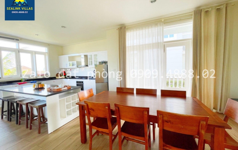 • Khu Bếp và Phòng Ăn: Nhà bếp được trang bị đầy đủ các thiết bị nấu nướng hiện đại, giúp quý khách dễ dàng chuẩn bị những bữa ăn ngon miệng cho gia đình. Phòng ăn ấm cúng, với bàn ăn lớn, là nơi lý tưởng để thưởng thức các món ăn và trò chuyện cùng nhau. Ngoài ra, quý khách cũng có thể tổ chức các buổi tiệc nướng BBQ ngoài trời, tạo nên không khí vui vẻ và thân mật.