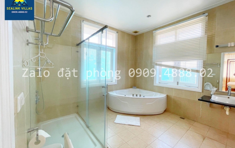 • Các Phòng Tắm: Villa có tổng cộng 3 phòng tắm, trong đó một phòng tắm được trang bị bồn tắm nằm, mang lại cho quý khách những giây phút thư giãn tuyệt vời. Các phòng tắm còn lại được thiết kế với bồn tắm đứng, tiện lợi cho việc sử dụng hàng ngày. Tất cả đều được trang bị đầy đủ các thiết bị vệ sinh hiện đại và các sản phẩm chăm sóc cá nhân cao cấp.