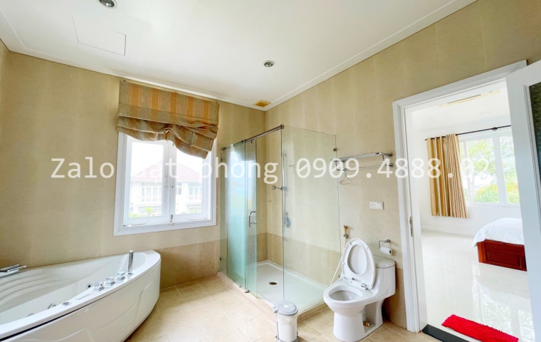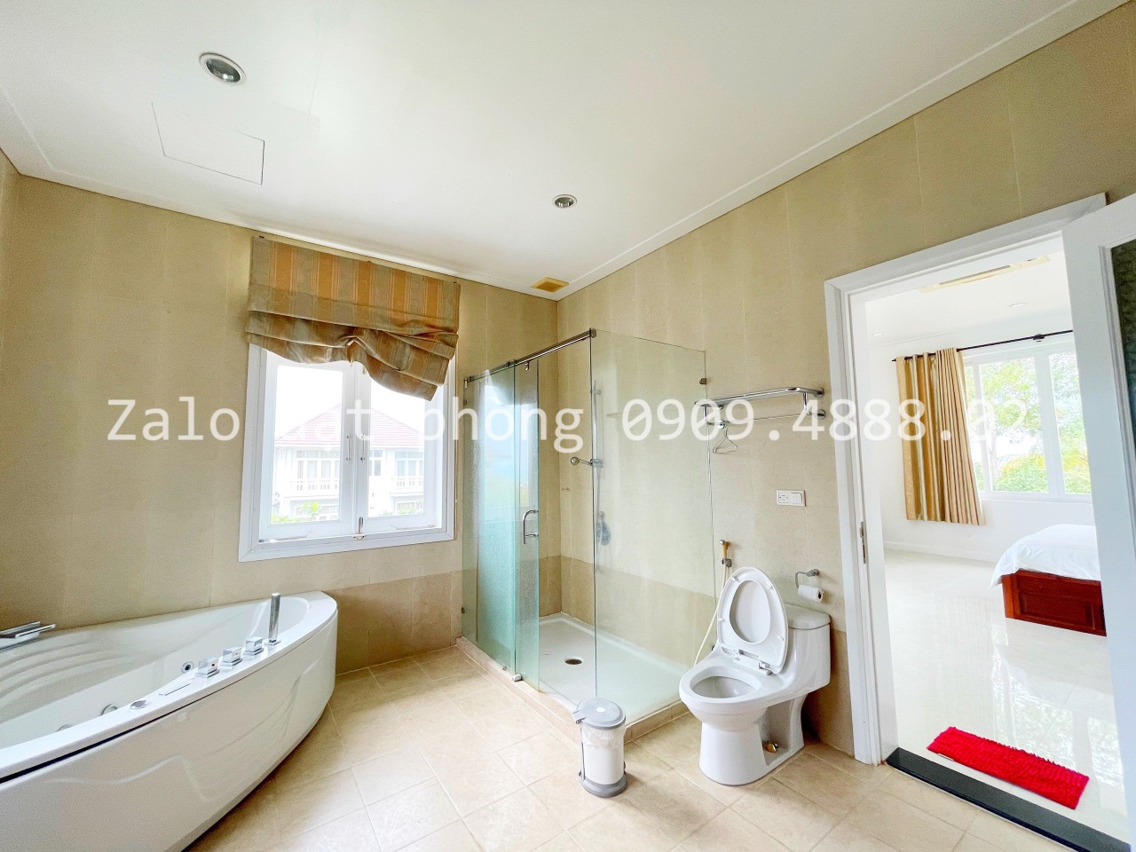 Không chỉ là nơi để nghỉ ngơi, mỗi phòng ngủ tại Villa Sealink S12 còn được trang bị phòng tắm riêng, mang lại sự riêng tư tối đa cho bạn và gia đình. Với đầy đủ thiết bị hiện đại, phòng tắm sẽ khiến bạn cảm thấy như đang ở trong một spa sang trọng. Một trong số các phòng tắm được thiết kế với bồn tắm nằm tuyệt đẹp, nơi bạn có thể thư giãn và tận hưởng những giây phút thoải mái nhất sau một ngày dài vui chơi.
