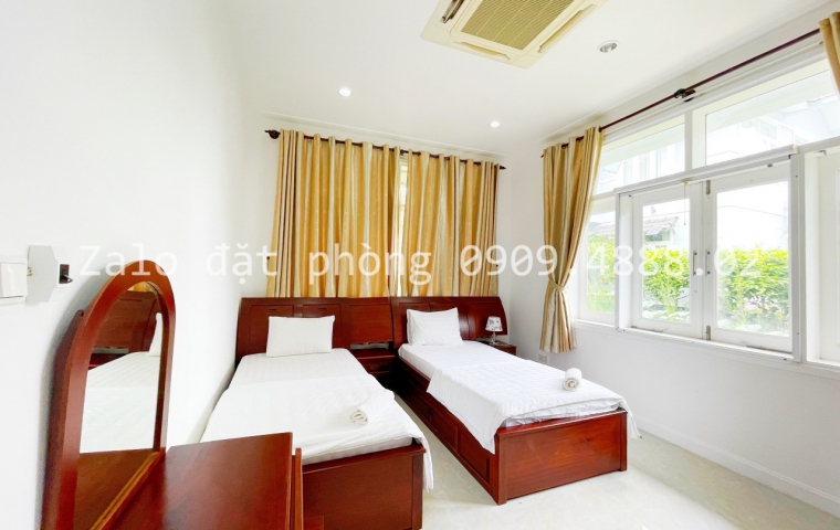 • Tầm Nhìn Đẹp: Một số phòng ngủ có tầm nhìn hướng ra khu vườn xanh tươi hoặc hồ bơi xinh đẹp. Đây sẽ là nơi lý tưởng để bạn có thể nhâm nhi một tách trà vào buổi sáng hoặc thưởng thức một cuốn sách yêu thích trong không gian yên bình.