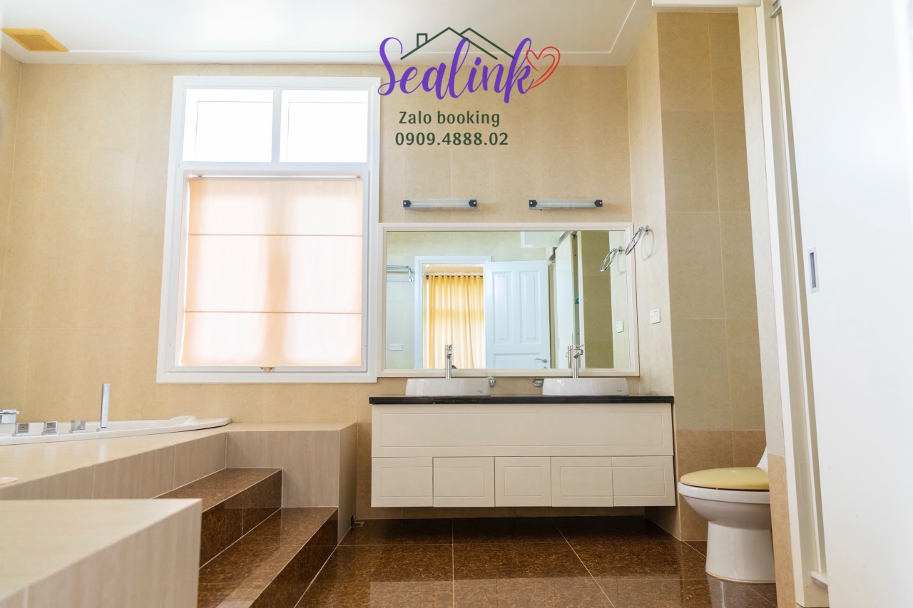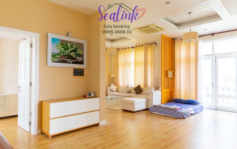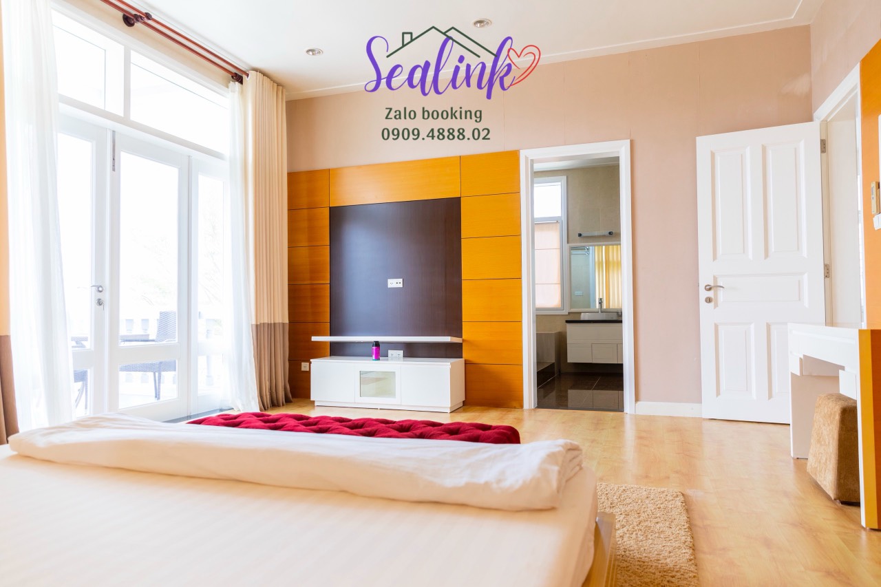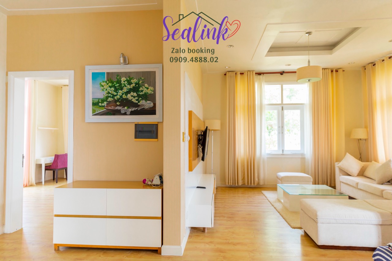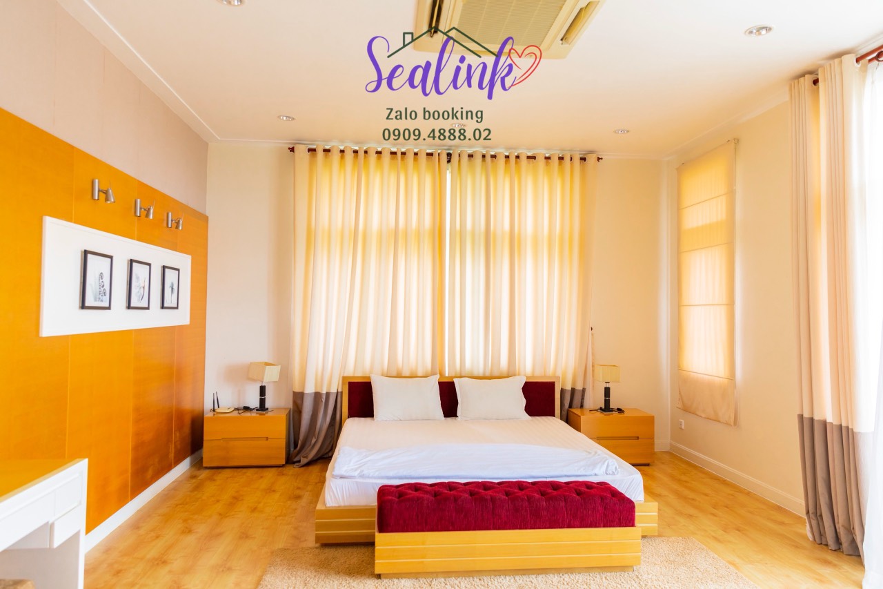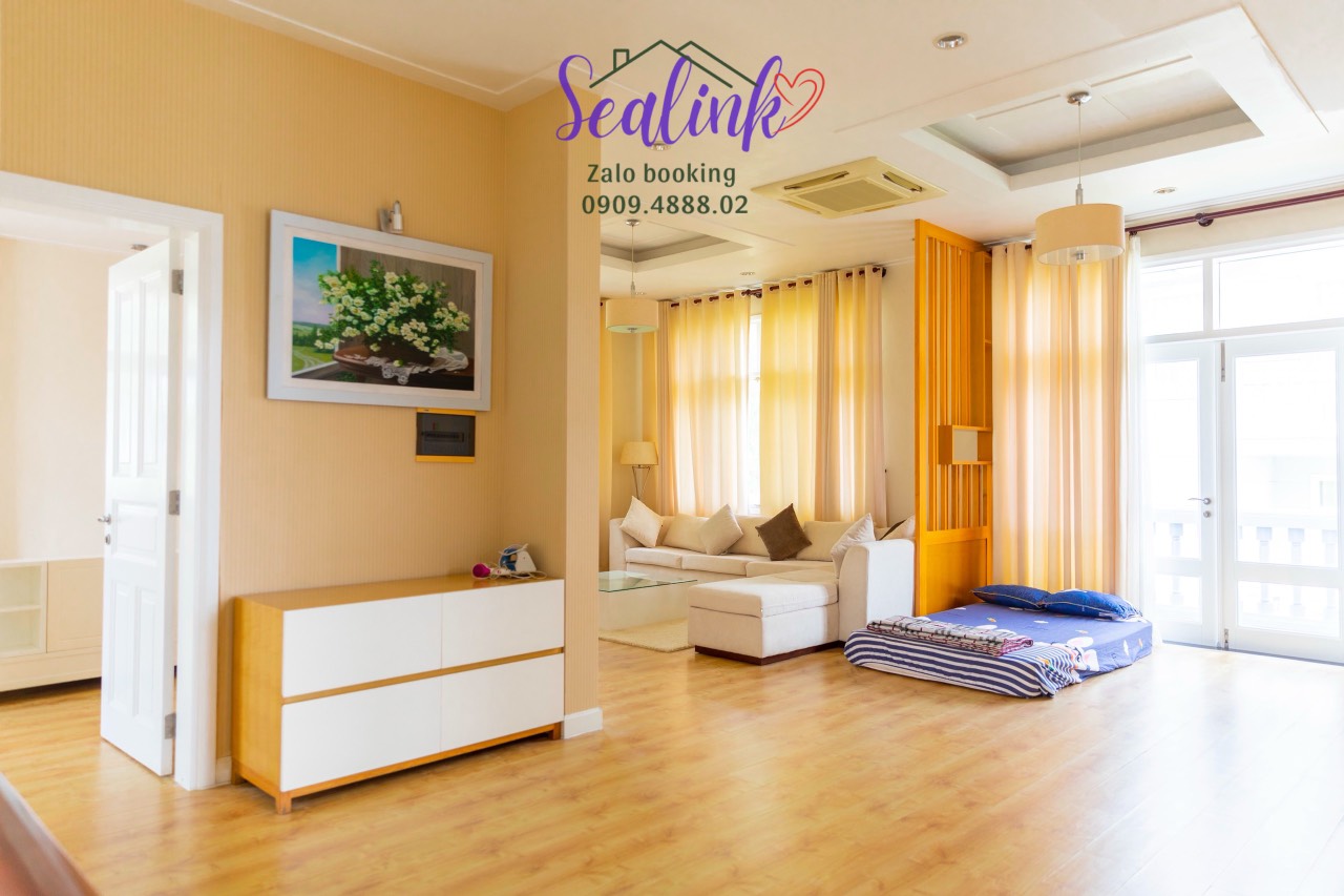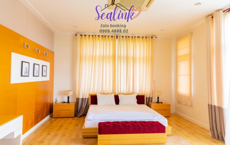 Villa S7 gồm 4 phòng ngủ, 4 toilet, 2 phòng khách, rộng 400m2. Villa Sealink nổi tiếng nhất tại mũi Né suốt hơn 15 năm qua. Mỗi căn villa ở đây sẽ set-up tổng cộng 4 giường và kèm 1 nệm phụ để dưới sàn.