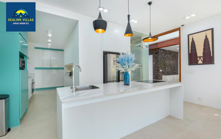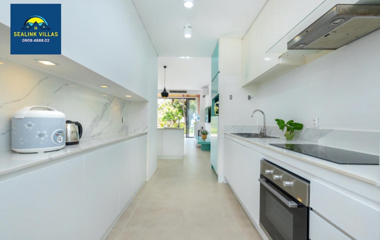 Khu bếp và không gian BBQ được trang bị đầy đủ dụng cụ (không bao gồm gia vị), cho phép bạn dễ dàng chuẩn bị những bữa ăn sang trọng ngay tại villa. Sẽ không có gì tuyệt vời hơn khi cùng người thân thưởng thức hải sản tươi ngon, chế biến theo phong cách riêng, ngay trong khuôn viên rộng lớn với gió biển mát lành.