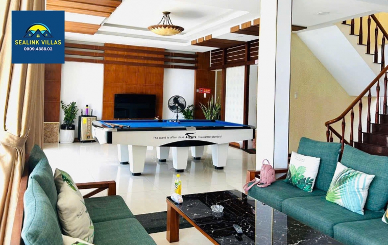 • Căn villa còn có bàn bida, tạo không gian giải trí cho các anh em trong nhóm