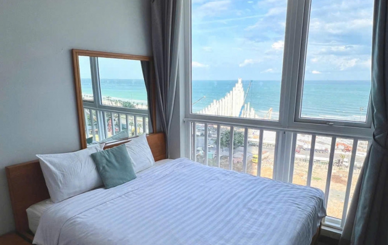 Một trong những ưu điểm đáng chú ý của căn hộ oasky mã 10I là tầm nhìn xéo biển thông qua hệ cửa sổ lớn. Dù không có ban công, nhưng thiết kế cửa sổ rộng vẫn đảm bảo khả năng đón gió và ánh sáng tự nhiên hiệu quả.