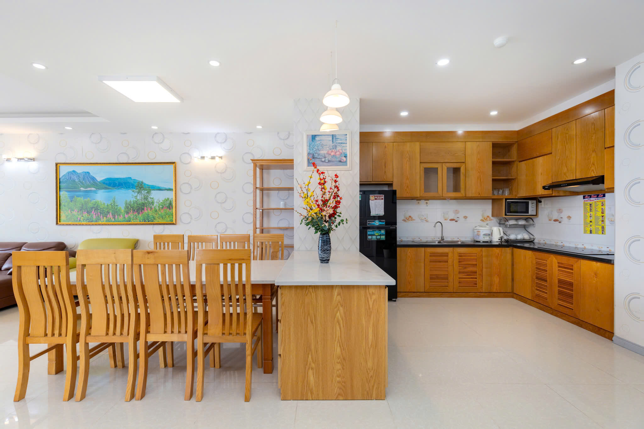 Căn hộ còn có bếp núc tiện nghi đầy đủ để bạn thỏa sức nấu nướng và chuẩn bị những bữa ăn ngon cho gia đình và bạn bè. Hãy cùng nhau tạo nên những bữa tiệc ấm cúng ngay tại căn hộ!