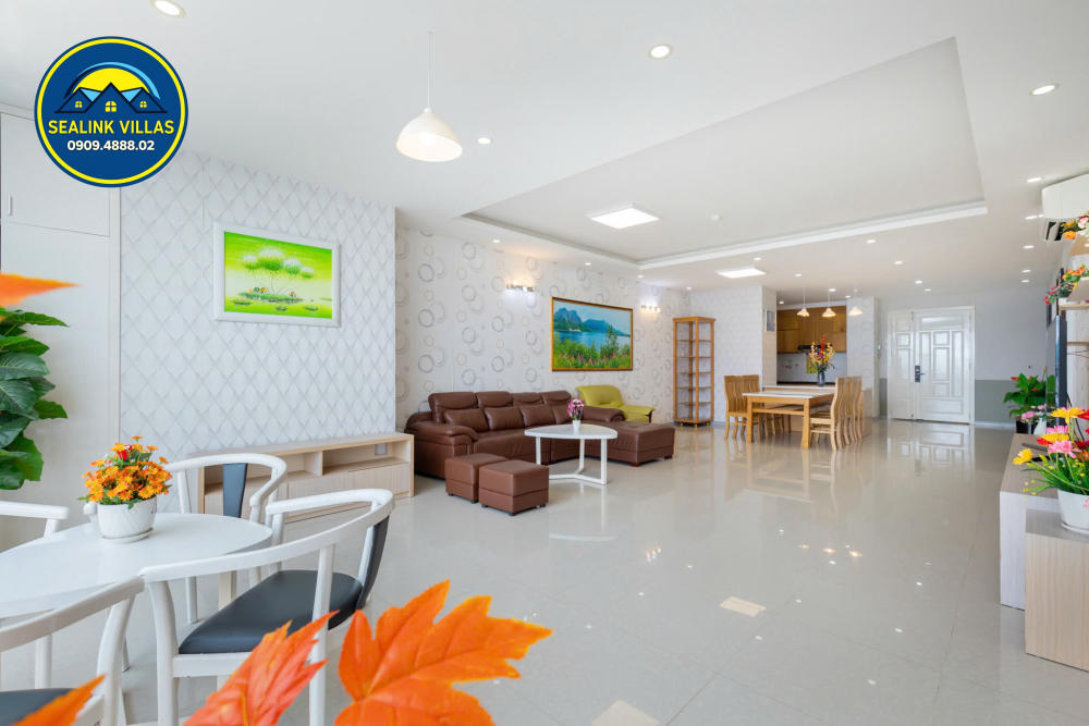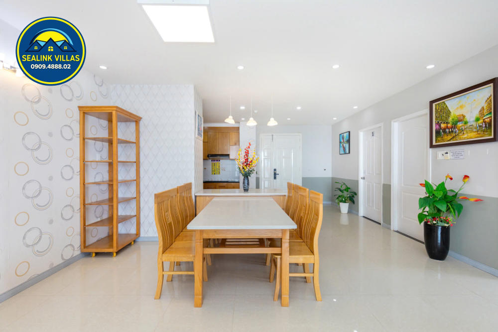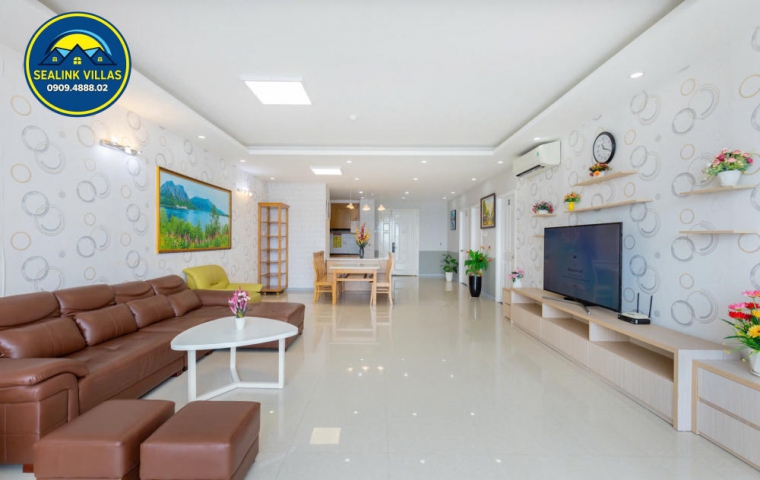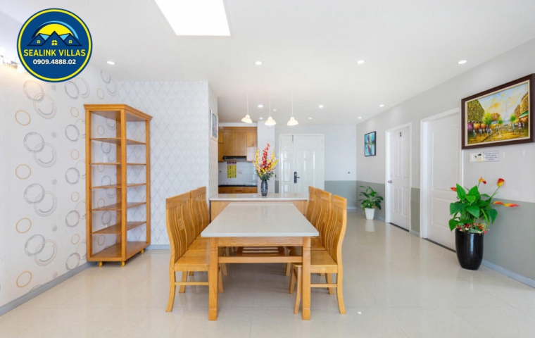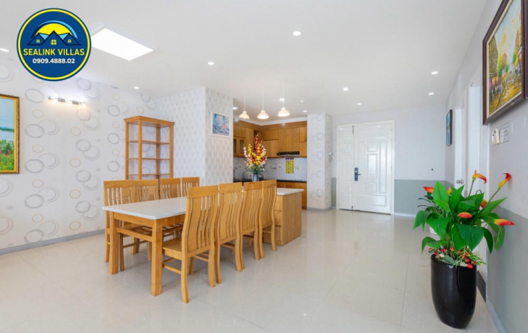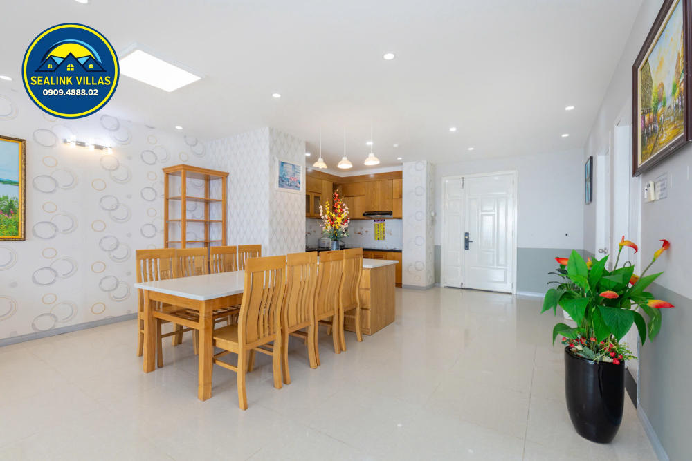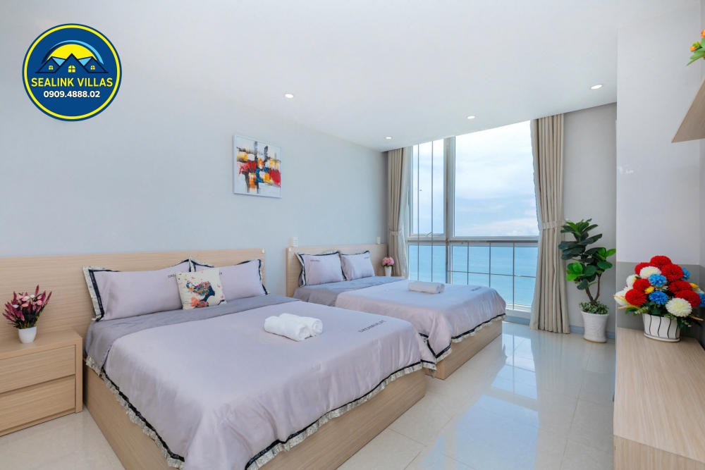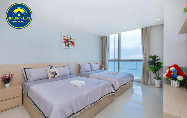 Căn hộ có diện tích sử dụng lên đến 150m² với 3 phòng ngủ và 3 toilet, giúp bạn dễ dàng tận hưởng không gian thoải mái và riêng tư. Đặc biệt, căn hộ được trang bị 6 giường với 3 phòng đôi, và nếu bạn đi đông, đừng lo lắng vì có kèm theo nệm phụ cho các vị khách vượt quá số lượng tiêu chuẩn.