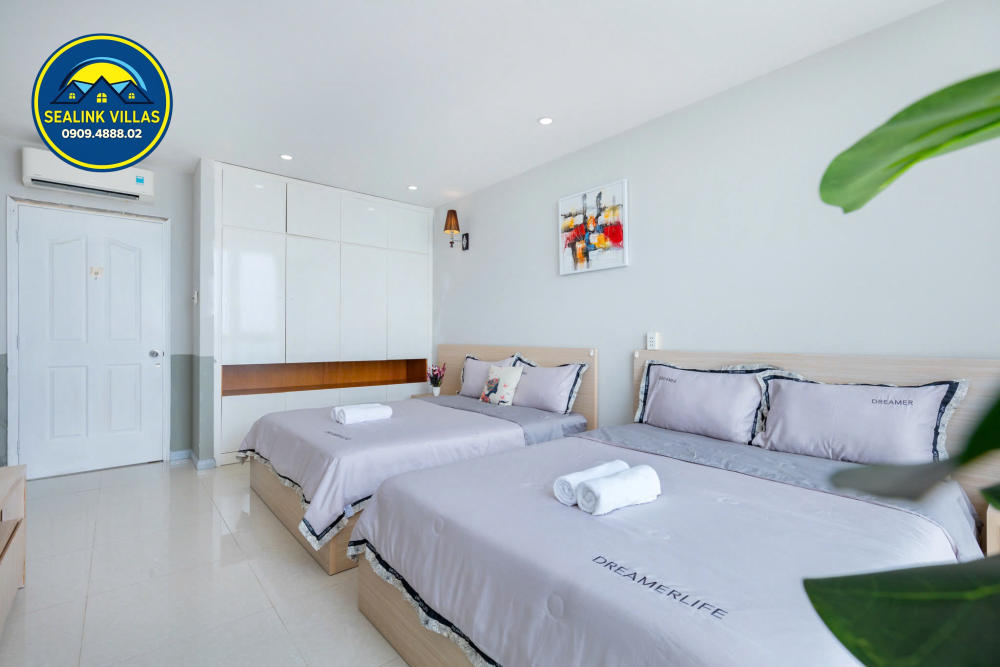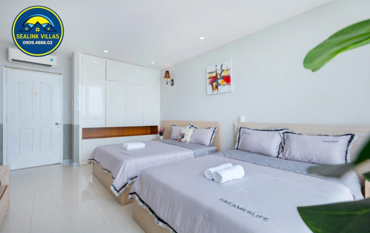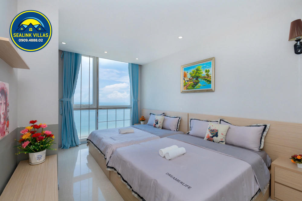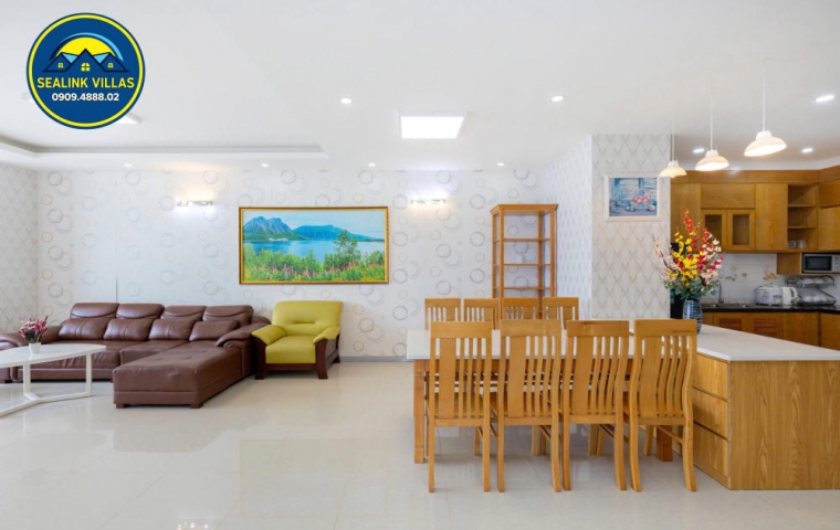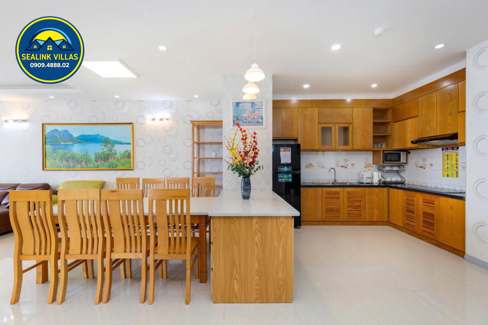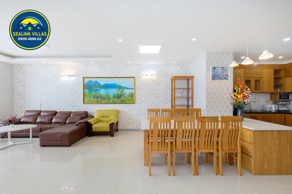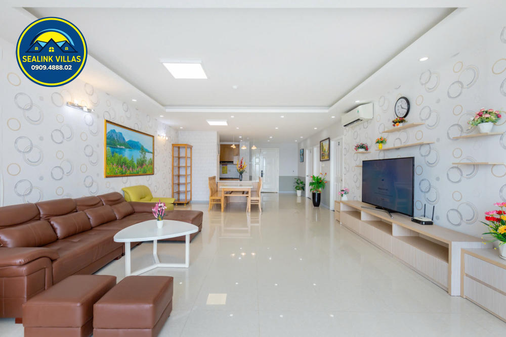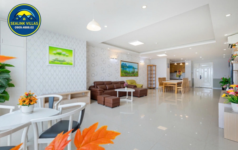 Căn hộ có diện tích sử dụng lên đến 150m² với 3 phòng ngủ và 3 toilet, giúp bạn dễ dàng tận hưởng không gian thoải mái và riêng tư. Đặc biệt, căn hộ được trang bị 6 giường với 3 phòng đôi, và nếu bạn đi đông, đừng lo lắng vì có kèm theo nệm phụ cho các vị khách vượt quá số lượng tiêu chuẩn.