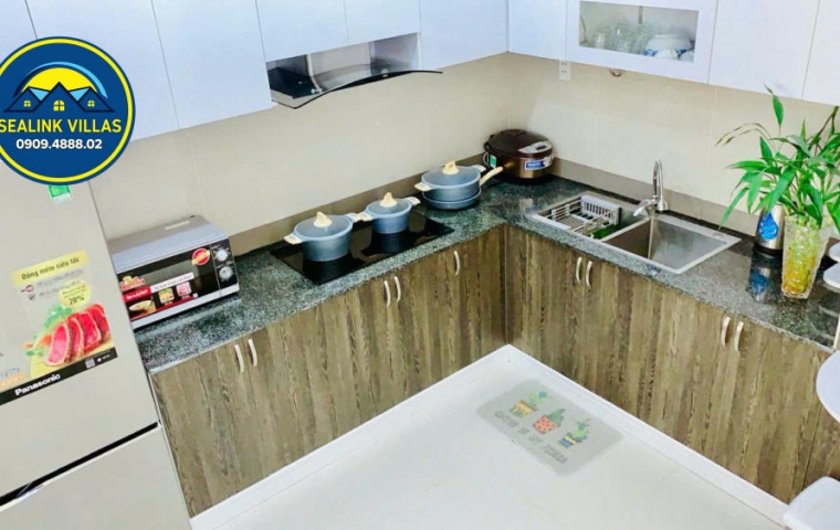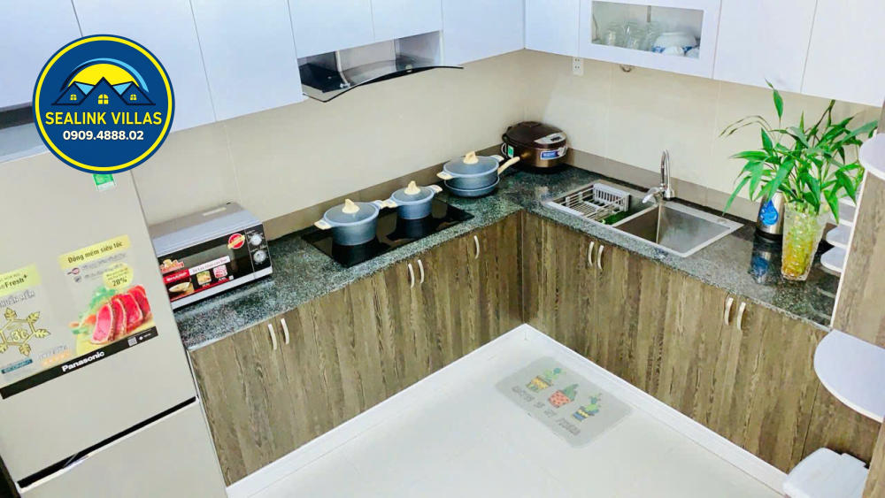 ✔Có bếp núc tiện nghi đầy đủ: nồi lẩu, nồi hấp, bếp nướng điện