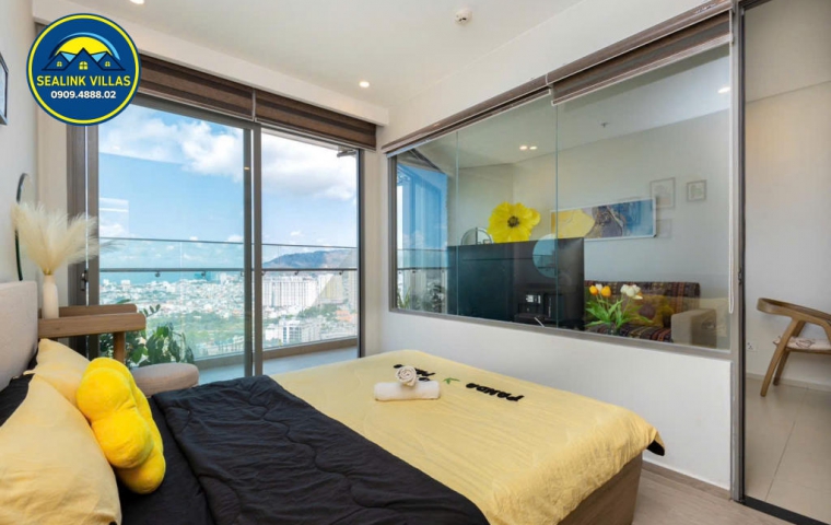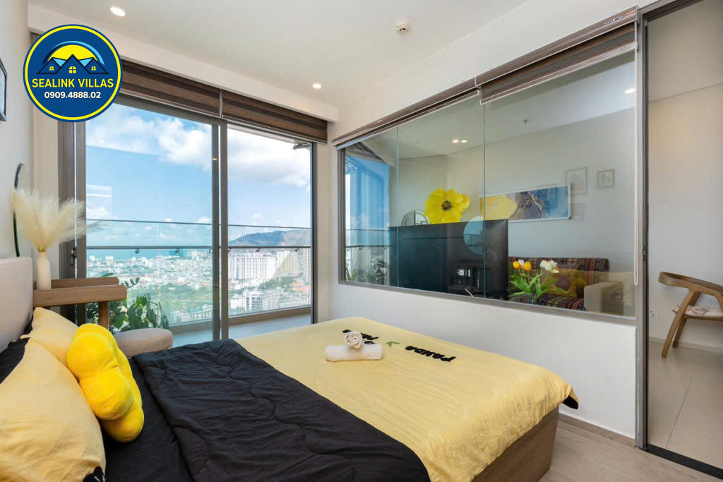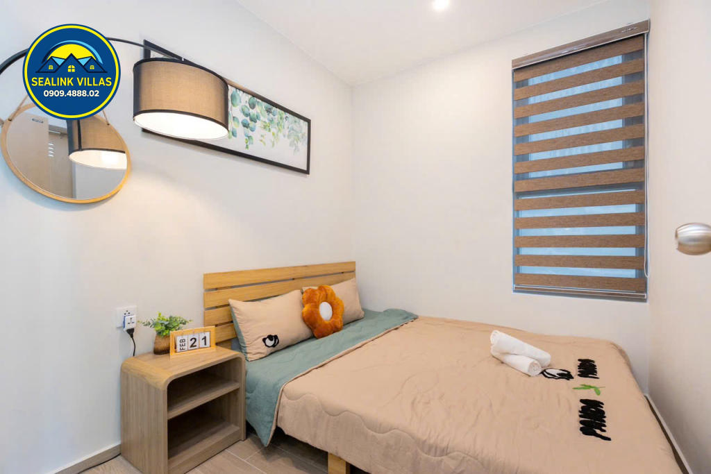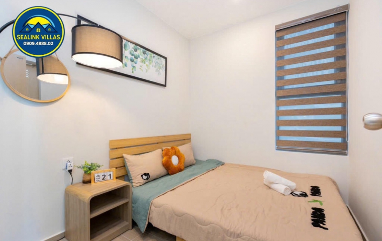 Căn hộ mã 24.27 có diện tích 50m², với 2 phòng ngủ và 1 toilet, thích hợp cho gia đình nhỏ hoặc nhóm bạn. Phòng ngủ đầu tiên được trang bị giường 1m6 và phòng ngủ thứ hai có giường 1m4. Cả hai giường đều rất thoải mái và đủ chỗ cho 4 người lớn hoặc trẻ nhỏ. Nếu nhóm của bạn có thêm thành viên, chỉ cần phụ thu 100k/người/đêm, nhưng đừng lo, căn hộ chỉ nhận tối đa 5 khách để đảm bảo sự thoải mái.