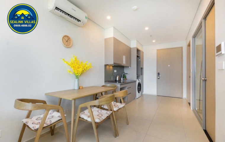 Nội thất trong căn hộ được thiết kế theo phong cách hiện đại, đơn giản nhưng không kém phần tinh tế. Mọi thứ từ phòng ngủ, phòng khách, đến phòng bếp đều được bày trí gọn gàng, đẹp mắt và cực kỳ tiện nghi. Đặc biệt, căn hộ luôn đảm bảo vệ sinh sạch sẽ, mang lại sự thoải mái và yên tâm tuyệt đối cho bạn trong suốt kỳ nghỉ.