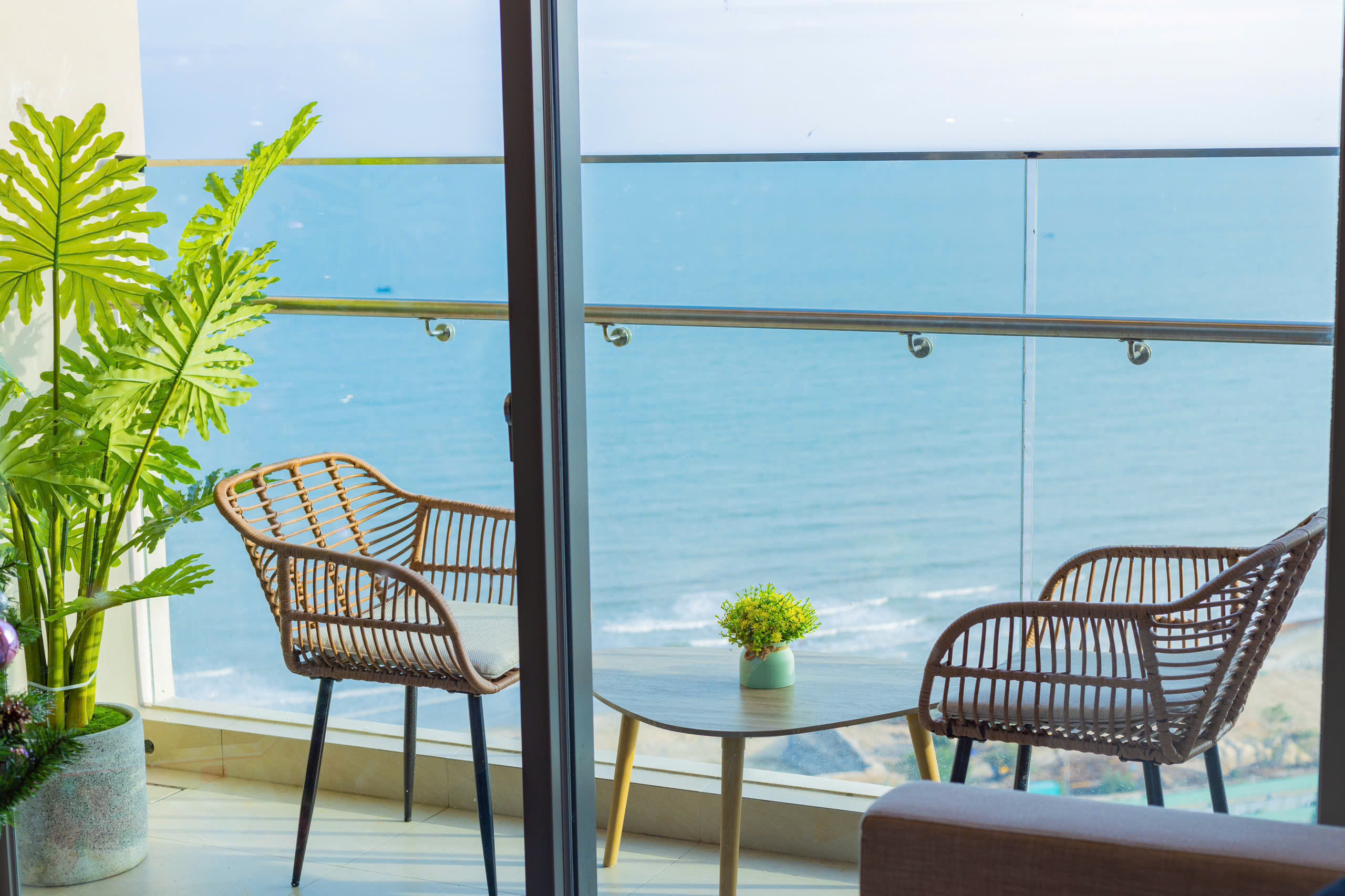 - Ban công: Căn hộ sở hữu ban công thoáng rộng với view biển trực diện, cho phép bạn ngắm trọn cảnh biển xanh từ sáng sớm đến chiều tà.