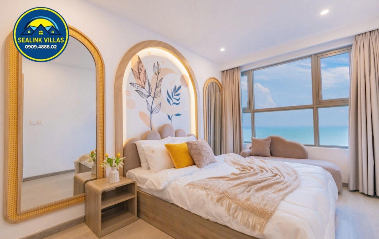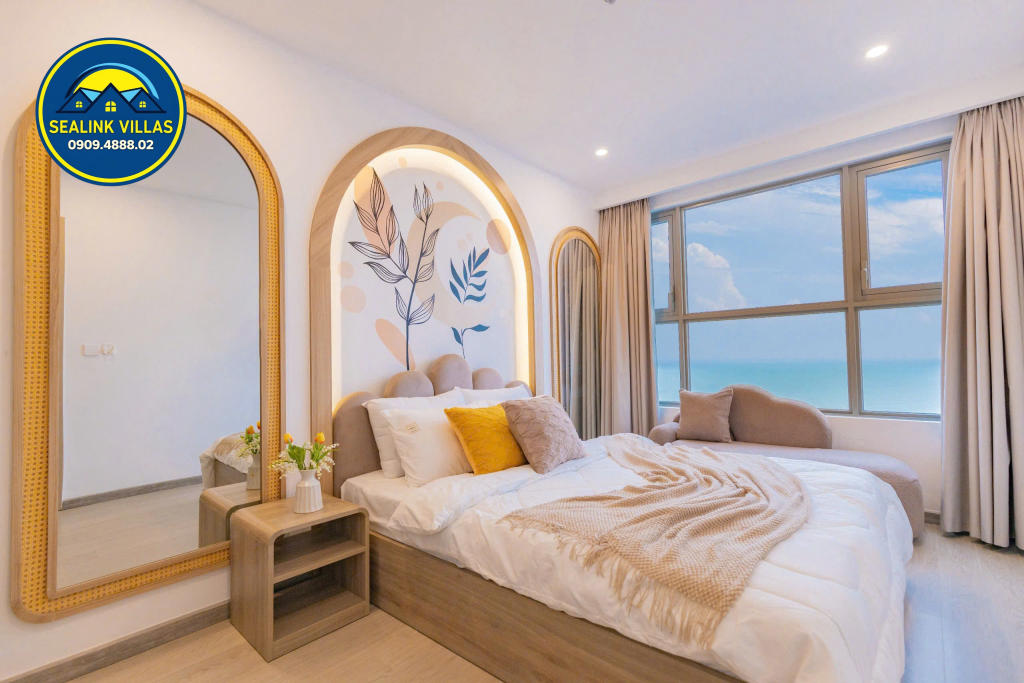 - Ban công: Rộng rãi với view biển trực diện, mang đến trải nghiệm ngắm cảnh biển xanh mát ngay từ chính căn hộ.