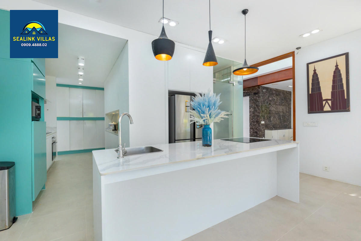 Khu bếp và không gian BBQ được trang bị đầy đủ dụng cụ (không bao gồm gia vị), cho phép bạn dễ dàng chuẩn bị những bữa ăn sang trọng ngay tại villa. Sẽ không có gì tuyệt vời hơn khi cùng người thân thưởng thức hải sản tươi ngon, chế biến theo phong cách riêng, ngay trong khuôn viên rộng lớn với gió biển mát lành.