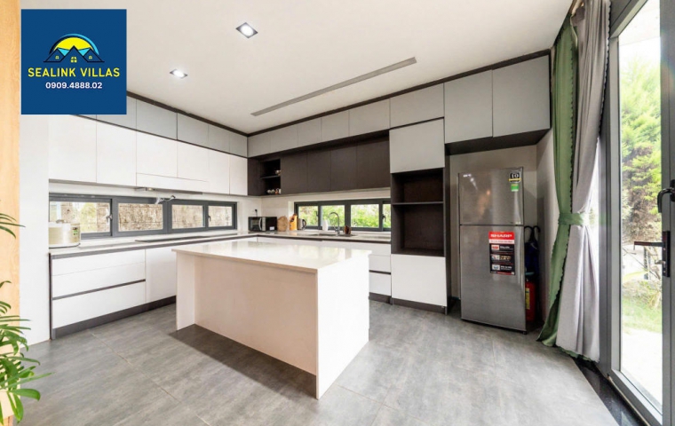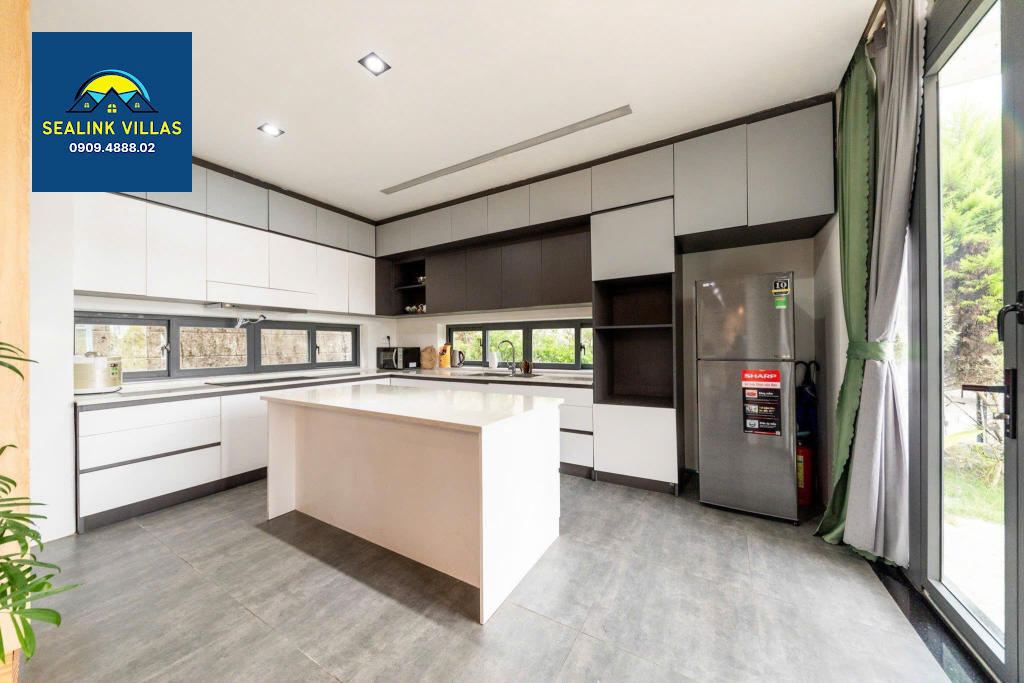 - Nhà bếp tiện nghi: Trang bị đầy đủ dụng cụ nấu nướng, phù hợp cho những buổi sum họp gia đình ấm cúng.