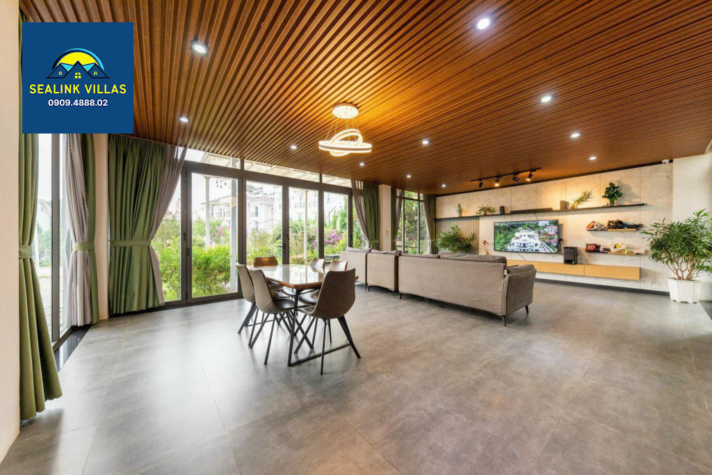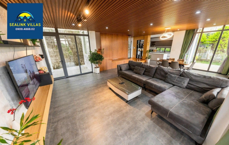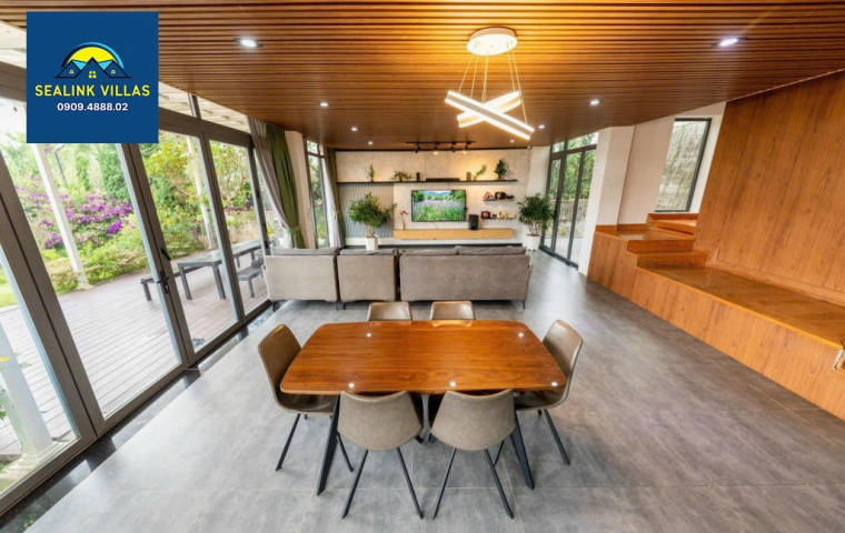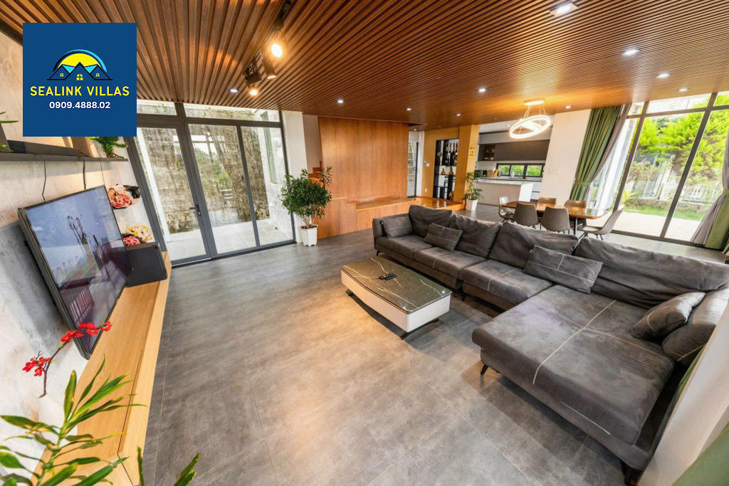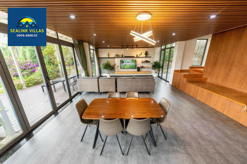 Sealink Đà Lạt 6.7 nổi bật với thiết kế cửa kính lớn, vừa mang vẻ đẹp hiện đại, vừa tối ưu hóa ánh sáng tự nhiên. Không gian bên trong ngôi nhà được trang trí tối giản nhưng không kém phần sang trọng, tạo cảm giác thoải mái và dễ chịu.