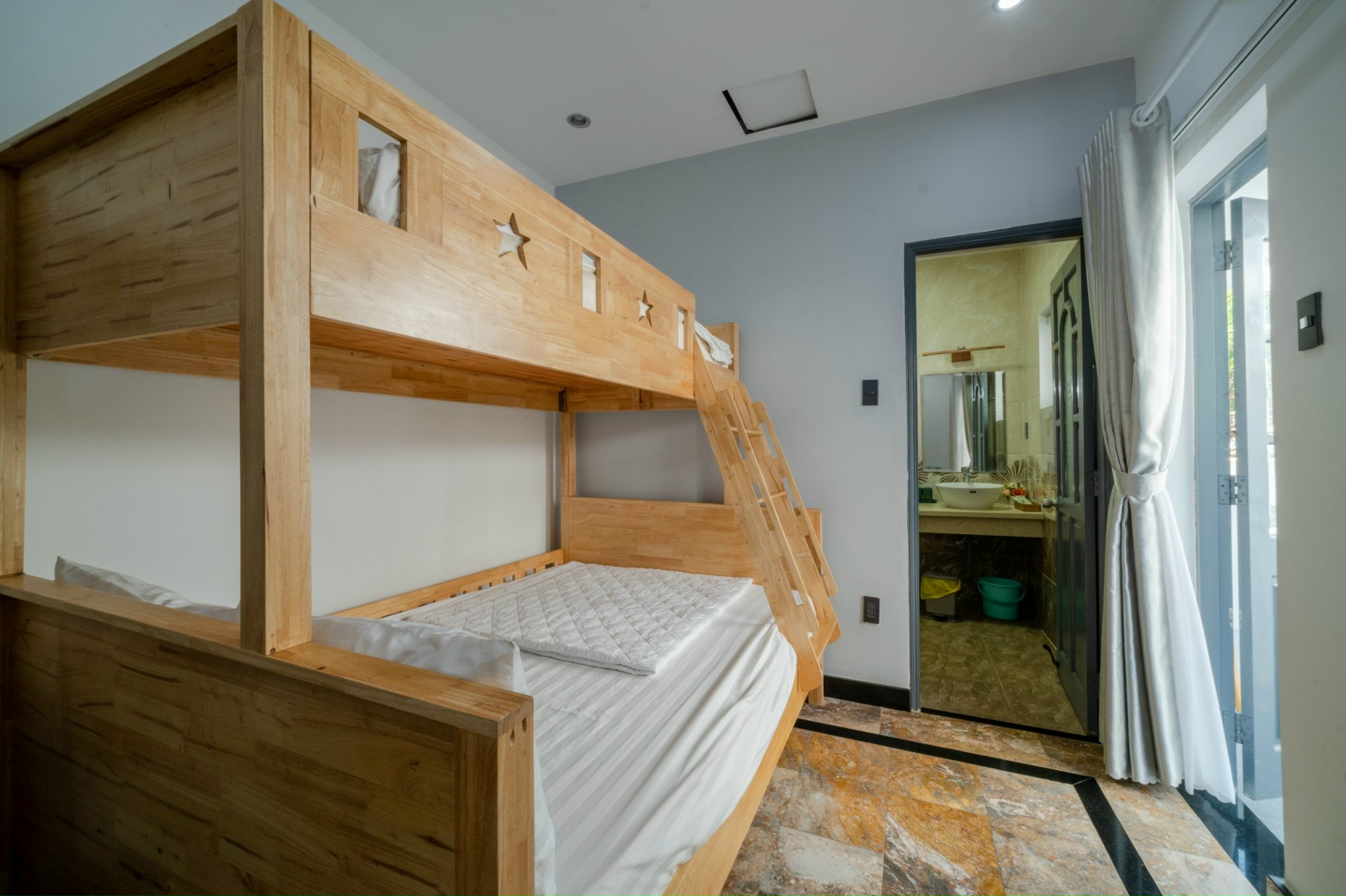 • Phòng Ngủ và Toilet: Villa có tổng cộng 6 phòng ngủ và 6 toilet, đảm bảo không gian riêng tư và thoải mái cho từng thành viên. Đặc biệt, villa có 8 giường lớn và 2 giường tầng cùng với nệm phụ, đáp ứng đầy đủ nhu cầu nghỉ ngơi cho cả gia đình và nhóm bạn. Mỗi phòng ngủ đều được trang bị đầy đủ tiện nghi, từ điều hòa, tủ quần áo, đến bàn làm việc, mang lại sự tiện lợi tối đa cho kỳ nghỉ của bạn.