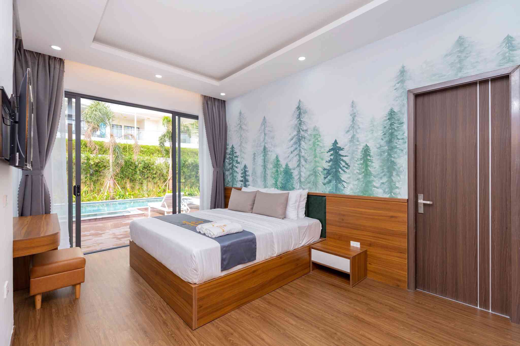 • Giường ngủ: Trong villa có tổng cộng 5 giường và sẵn sàng cung cấp nệm phụ cho những khách đoàn đông. Villa có khả năng chứa đến 12 người lớn và 5 trẻ em dưới 6 tuổi, giúp bạn có thể thoải mái tổ chức các buổi họp mặt gia đình hay bạn bè.