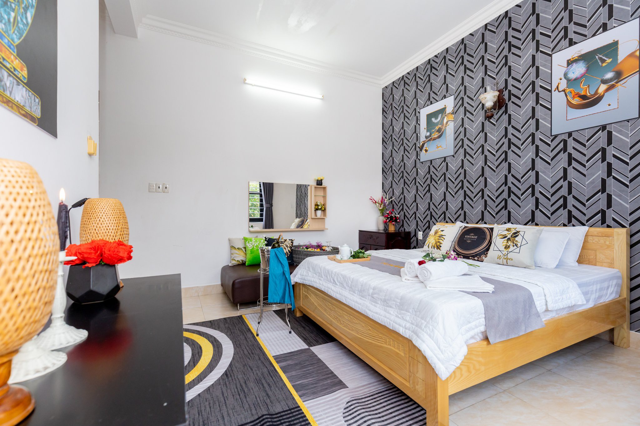 Villa có tổng cộng 5 phòng ngủ, mỗi phòng đều được trang bị giường ngủ êm ái và nệm phụ, đảm bảo mang lại giấc ngủ ngon cho tất cả các thành viên. Ngoài ra, với 5 toilet (4 toilet trong), bạn sẽ không phải lo lắng về sự bất tiện trong sinh hoạt hàng ngày.