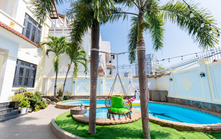 Hồ bơi tại villa không chỉ là nơi giải nhiệt mà còn là không gian lý tưởng để bạn thư giãn và vui chơi. Bên cạnh đó, sân vườn rộng rãi với bàn ghế được sắp xếp hợp lý là nơi tuyệt vời để tổ chức các buổi tiệc BBQ, party sinh nhật hoặc những bữa ăn thân mật ngoài trời.