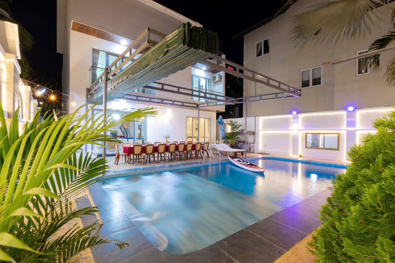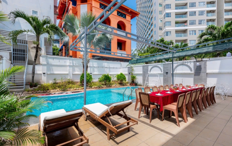 - Hồ bơi riêng: Nằm ngay trong khuôn viên villa, hồ bơi xanh mát là nơi lý tưởng để thư giãn, tổ chức những buổi tiệc hồ bơi sôi động hoặc đơn giản là tận hưởng khoảnh khắc thư thái dưới ánh nắng dịu nhẹ.
