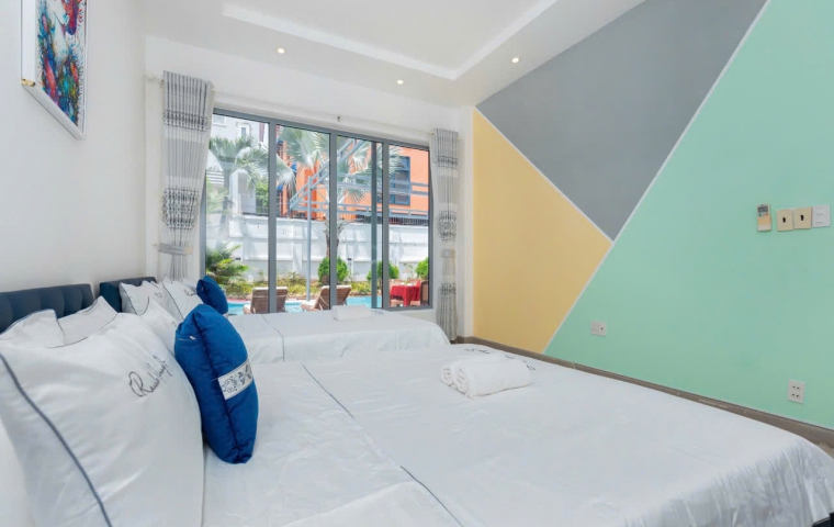 - Giường ngủ: Với 12 giường lớn được trang bị chăn ga gối cao cấp, villa mang đến sự thoải mái tối đa cho cả đoàn khách đông người, từ nhóm bạn bè đến gia đình nhiều thế hệ.